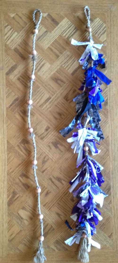 Hexenleitern sind ebenfalls aus Bändern mit Knotenmagie gewebt. Nur das die Hexe noch Gegenstände mit einknotet… Hexenleitern dienen zur Abwehr von negativen Energien, wie Verhexungen. Steine, Federn oder andere Dinge von Mutter Natur werden mit eingeknotet. Diese Hexenleiter wird dann außerhalb des Hauses, in Haustürnähe aufgehängt, oder direkt im Haus, neben der Eingangstür.