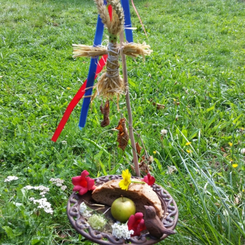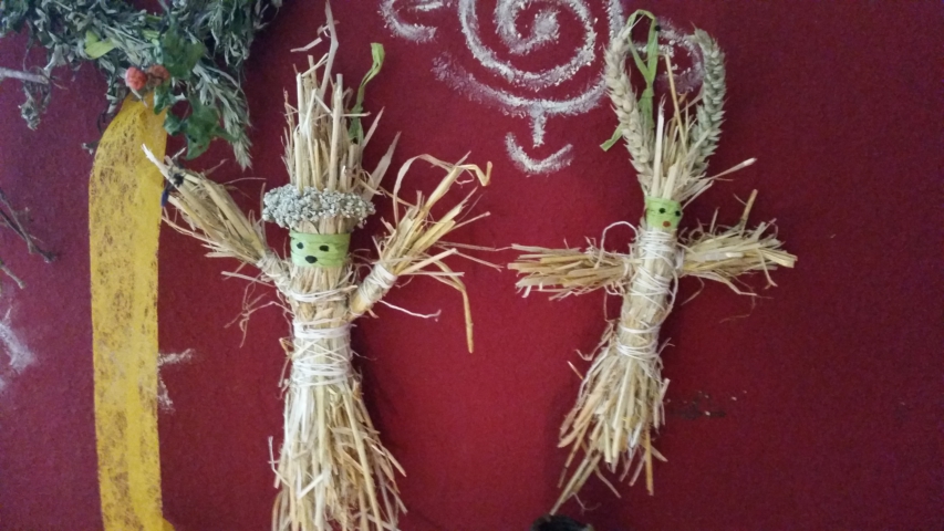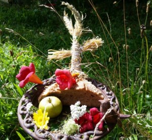 Eine Kornmutter basteln,… aus ein paar Handvoll Ähren, die aber  ein paar Tage vorher schon  geschnitten werden sollten, da um diese Zeit oft die Felder leer geerntet sind. Wer mag, kann eine Kornmutter herstellen, die  dann im Augustfeuer verbrannt werden kann. Als Dank für ein erntereichen Sommer.
