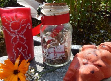 Die Flasche sollte, bevor sie versiegelt wird, natürlich noch mit guten Wünschen in Form von kleinen Zaubersprüchen geweiht und aufgeladen werden. Den Wortlaut möchte ich jedem selbst überlassen, hier sollte man seiner ureigenen Intuition nachgehen. Am besten ist es dann, die Hexenflasche solange magisch aufzuladen (also auf dem Altar oder an einem dafür gewählten Ort) bis die Vollmondin erneut am Himmel erscheint, also für einen halben Mondinzyklus. Hierdurch hat sich all der Zauber  der zunehmenden Phase der Mondin in seiner vollen Kraft entfaltet.